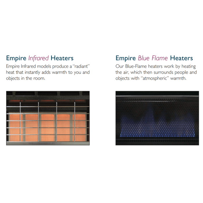 Ask questions about the Empire 20,000 BTU 18 Inch Blue Flame Heater Natural Gas Vent Free White Modulating Hydraulic Thermostat Control