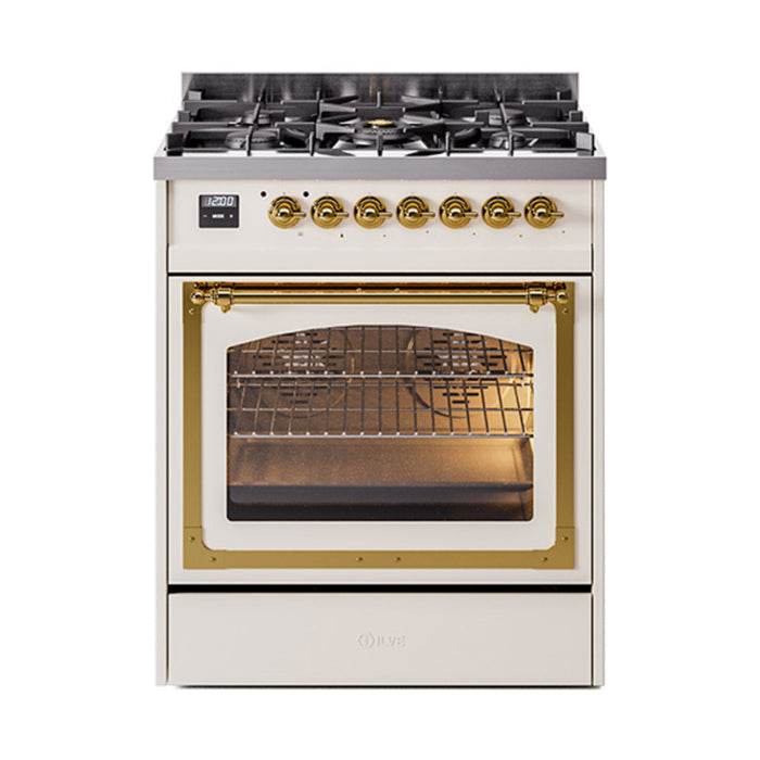 Ask questions about the ILVE 30 Inch Nostalgie II Noblesse Freestanding Dual Fuel Range with 5 Sealed Burners with Brass Trim