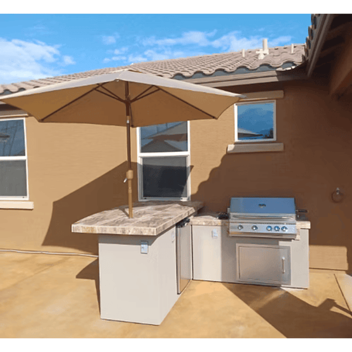 Ask questions about the Kokomo Grills Caribbean BBQ Island with 4 Burner Built In BBQ Grill, Refrigerator and Drawers